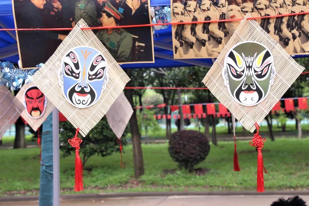 “义结金‘蓝’”区设有绘纸扇、画脸谱等传统手艺体验活动,在这里,同学们可以自己动手,深刻感受“非遗”文化的魅力,他们争先体验,场面甚是火爆。