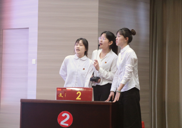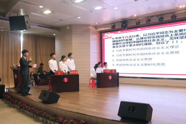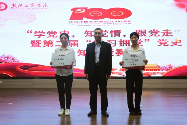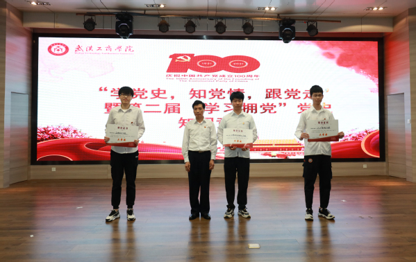 新闻中心讯(记者 崔颖 汪旸)为贯彻落实习近平总书记在党史学习教育动员大会上的重要讲话精神,激发全校师生爱党爱国的热情,5月20日14:30,武汉工商学院在学术报告厅举办“学党史、知党情、跟党走”党史知识竞赛总决赛。学校党委副书记左宗文、学工部部长陈义文、思政课部教授张玉平、图书馆馆长万化喜、公共课部党总支书记朱威、党群工作部副部长王曼、团委书记邱玉添及各学院党总支书记、分团委书记、学生代表参加本次比赛。经过三轮激烈角逐,文法学院代表队最终夺得大赛一等奖。