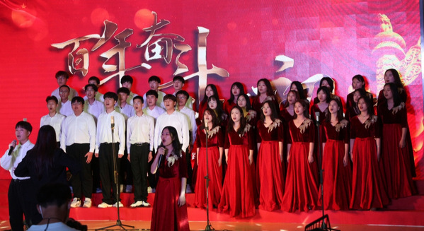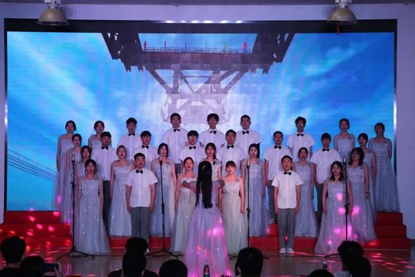 《没有共产党就没有新中国》《红星歌》《明天会更好》《我们走在大路上》《南泥湾》等一首首激情澎湃、气势磅礴的红歌,再现了建党百年气势恢宏的历史画卷,演绎了催人奋进的壮丽史诗。嘹亮优美的歌声、整齐划一的队形、庄重严肃的表演,都是武工商学子们一颗红心向党的真实写照,展现出了他们奋勇争先、昂扬向上的精神风貌。比赛现场气氛热烈,精彩纷呈,各代表队都唱出了自己独特的风格,欢呼声和掌声此起彼伏。