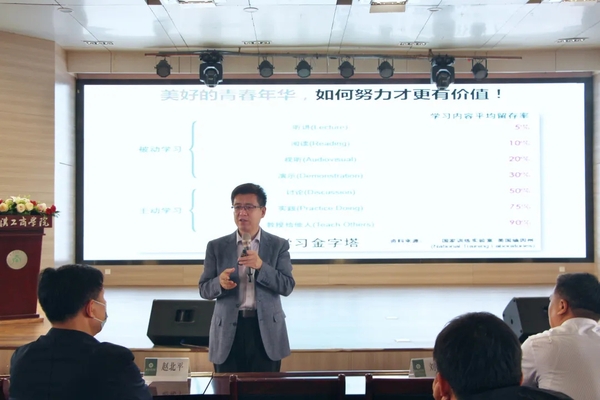 新闻中心讯(记者 田玮璇 摄影 张奈尔 程周婉燏)为进一步增强教师对大学生创新创业项目的指导与管理能力,5月27日14:30,教育部创新创业教育指导委员会委员、哈尔滨工业大学教授高继慧受邀来到武汉工商学院,在学术报告厅做了题为“创新教育与教育创新”的主题讲座。学校党委书记刘生元,副校长赵北平,人力资源部部长邢赛鹏,创新创业教育学院院长金学武,艺术与设计学院院长王海文、党总支书记罗筱芳,物流学院党总支书记蔡菁,环境与生物工程学院党总支书记陈玲及师生代表参加了本次讲座。