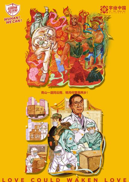 图为学生组一等奖作品《武汉加油》 作者:杨子豪