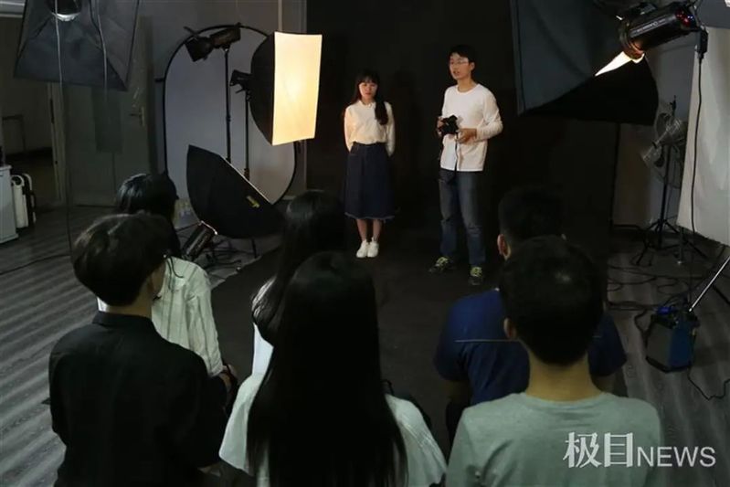 牛学老师在摄影棚为学生上课