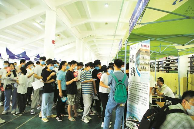 6月21日上午,武汉铁路职业技术学院为还有3天就离校的2021届毕业生们送上了最实在的毕业礼物:一场有3000多个岗位的大型招聘会。