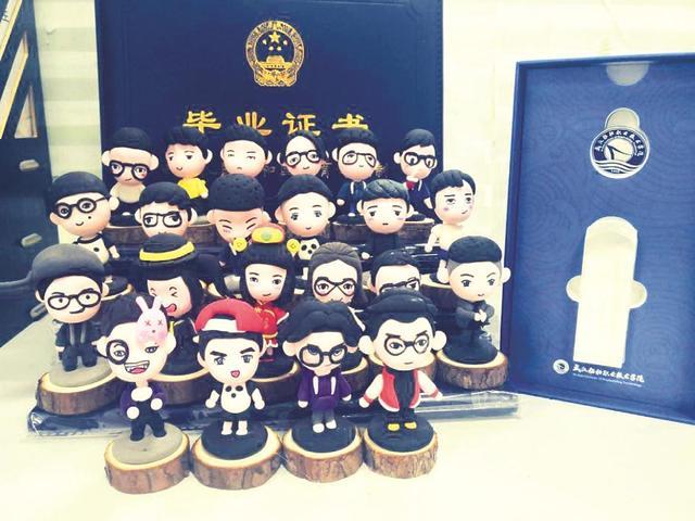 武汉工商学院向毕业生赠送名为“静思壶”的茶壶,其名来自该校的“静思湖”,有期冀学生遇事沉着冷静、慎思明辨之意。武汉工程大学邮电与信息工程学院给每位毕业生送上镌刻着自己名字的水晶印章和书签,希望大家勇于承担责任,终身热爱学习。武汉船舶职业技术学院机械工程学院数控技术专业18120班学生每人都收到了专属超轻黏土人偶,它们由该班班主任何寅按照毕业生的卡通形象手作。