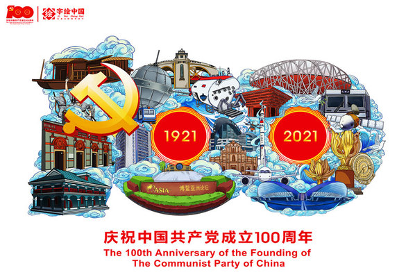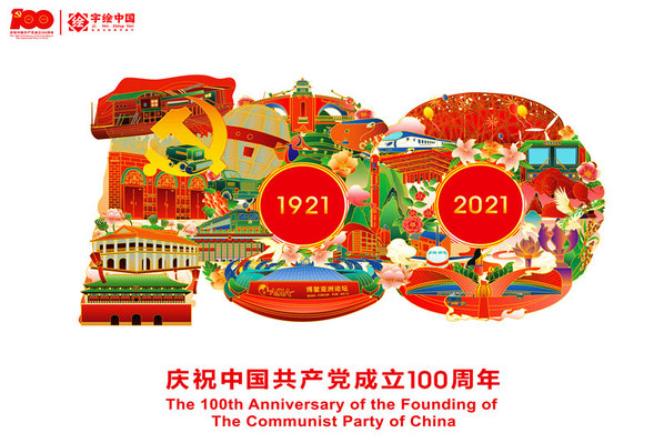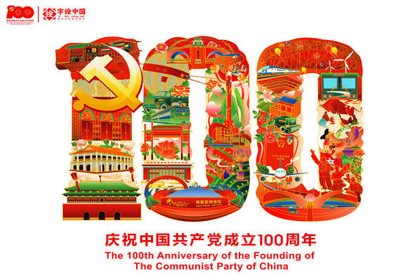 其中该校艺术与设计学院“字绘中国”师生团队创作的6幅“庆祝建党一百年”的字绘作品格外引人注目。该系列作品以数字“100”为基本造型,将中国共产党发展历程、近代科技强国战略内容和红色景点等重要元素融入其中进行了专题创作,历时1个月之久。