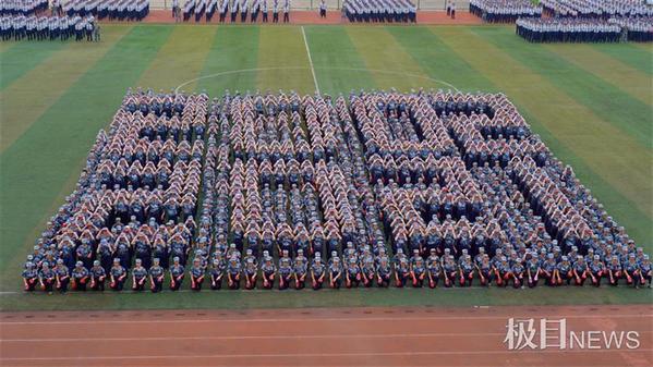图为女子花样方阵摆出“工商”字样 摄影:赵宸毅