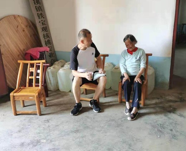 图为工作队顾问隗德胜与90多岁的村民谈心,深入了解其身体和生活起居情况