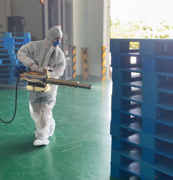 汪小平正在进行消杀工作