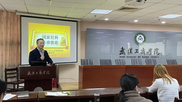 新闻中心讯(特约记者 王瑾)11月4日13:30,在学校第三会议室,华中师范大学戴胜利教授应邀来校做国家社会科学基金项目专题辅导讲座,来自各单位60余教师参加了讲座。讲座由科技部常务副部长刘芳主持。
