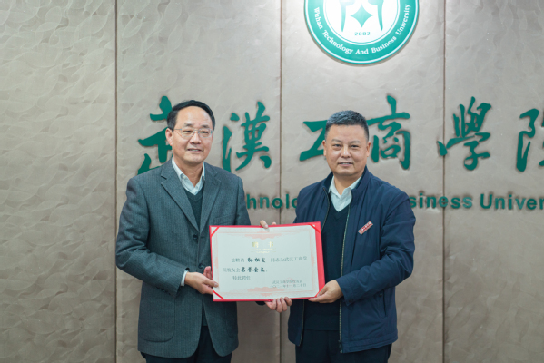 图为刘生元书记向彭秀春颁发校友会会长聘书 见习摄影:滕欣宜