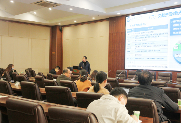 万化喜副主任宣读了《关于调整我校图书情报工作委员会成员的通知》,并围绕“图书馆建设情况”“创新服务与利用”“建设与规划”三方面介绍了学校图书馆工作。他表示,建设决定了图书馆的发展指标,图书馆的文献资源建设在稳步上升,馆舍环境也在逐渐优化,尽力给同学们带来更好的学习环境。同时为了让同学们形成良好的阅读习惯,学校从2014年开始推行阅读学分制,通过“阅读+考核”的方式激励大学生多读书、读好书,培养其良好的自学能力和阅读习惯。