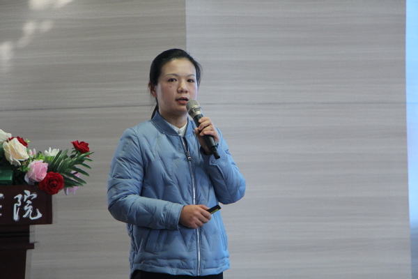 图为应用技术学院学生音梦婷作为“品牌宣传代言人”学生代表发言 见习摄影:胡毅