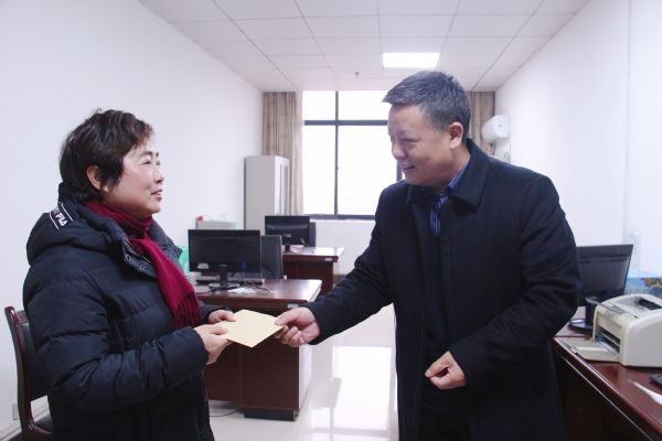 每到一处,刘生元书记都与困难教职工进行亲切交谈,关切地询问他们的所需、所难、所盼,鼓励他们坚定信心,克服暂时困难,并送上新春祝福和慰问金。