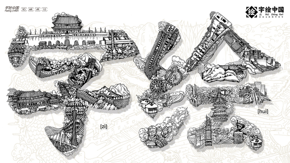 《字绘中国》系列作品于2014年首度推出,是项目团队师生通过挖掘中华优秀传统文化、红色文化、先进文化和城市历史沿革等深厚内涵,将汉字和图形元素相结合,并且融入了虚拟现实、交互体验等现代新媒体技术手段,打造出的富有思政教育意义、具备鲜明文化特色的艺术设计作品。