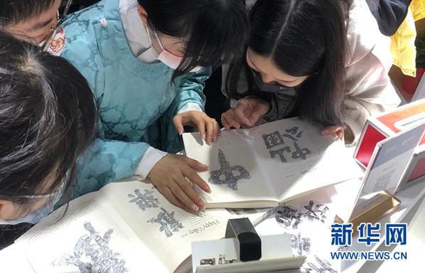 图为武汉工商学院的《字绘中国》作品吸引高校学子阅读。新华网发
