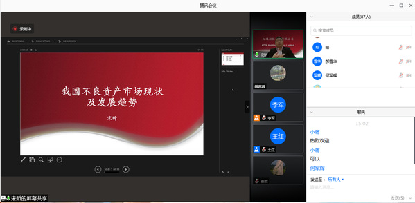 2021年3月26日下午3时,第四十一期中部金融讲坛在线上成功举行。本次讲座邀请到了红蚁控股集团有限公司总经理宋昕担任主讲嘉宾,通过“我国不良资产市场现状及发展趋势”这一主题为同学们进行了分析与讲解。