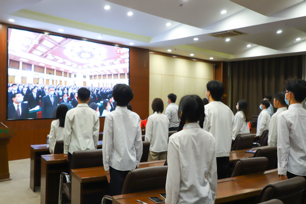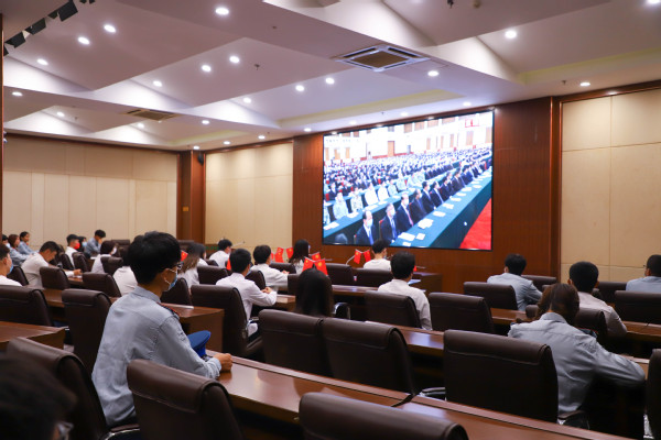 新闻中心讯(记者 蓝静 李洋洋 汪欣怡)5月10日上午,庆祝中国共产主义青年团成立100周年大会在北京人民大会堂隆重举行。中共中央总书记、国家主席、中央军委主席习近平出席大会并发表重要讲话。武汉工商学院团委组织广大干部师生,尤其是青年团员,通过集中观看、个人自学等方式收看了大会直播,认真学习了总书记的讲话精神。通过学习,广大干部师生们纷纷表示,总书记的重要讲话意味深长,催人奋进,要以实现中华民族伟大复兴为己任,在新的征程上自觉担当重任,把忠诚书写在党和人民事业中,把青春播撒在民族复兴的征程上,把光荣镌刻在历史行进的史册里!