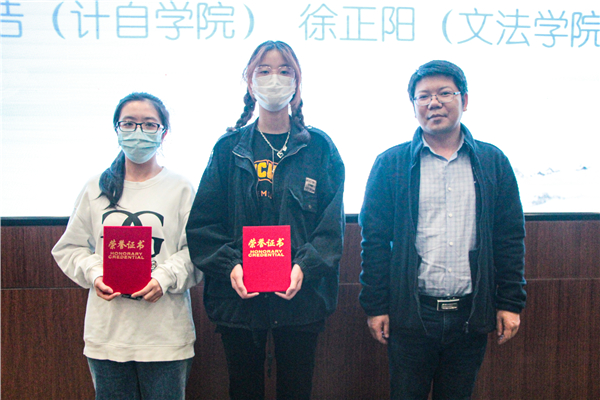 刘生元书记、左宗文副书记等领导分别为“第三届大学生中华经典美文诵读大赛”“我与经典征文书评影评大赛”“经典在我心演讲比赛”“2021年度信息素养大赛”“2021年度博采弘风辩论”等比赛的获奖学生颁奖。