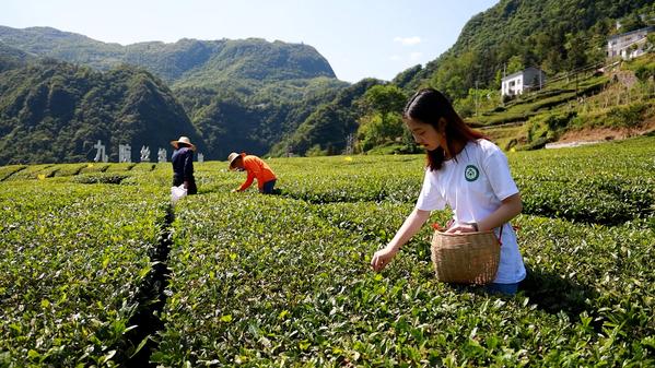 图为拍摄组成员为采摘九畹丝绵茶代言 摄影:张誉东