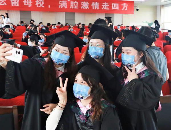 毕业生在学士学位授予仪式现场合影(极目新闻通讯员张世杰摄)