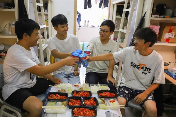 学生们在寝室品尝小龙虾校庆餐(学校供图)