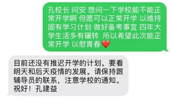 “很多同学都说,孔校长真正做到了把每位同学的事都放在心上。校长的形象,又在我们心中多了一份亲切和贴心。”覃娴说,毕业后她要好好保存和校长的短信对话,留作纪念。