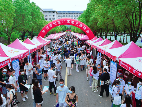 新闻中心讯(记者 蓝静 孙欢欢 李洋洋 苏文豪 陈敏 廖雪韵)6月12日,由湖北省教育学会指导举办的第21届湖北高招咨询会在武汉工商学院开幕,这是今年湖北首场高招咨询会。本届高招咨询会吸引了华中科技大学、华中师范大学等省内各批次近百所高校参加,现场接受考生和家长的咨询。