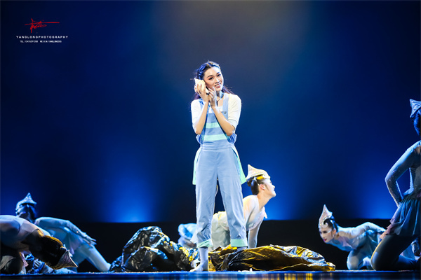 作品《净海》以一位清理岸边塑料垃圾的海洋保护志愿者的梦境为切入点,展示了塑料垃圾侵入海洋对白暨豚和其他海洋生物的危害。作品用白色塑料模拟浪花,黑色塑料模仿塑料垃圾,充满了创意,旨在呼吁人们减少塑料垃圾、保护海洋动物、爱护海洋环境,同时也表达了在大家的共同努力下让海洋更美丽的美好期盼。