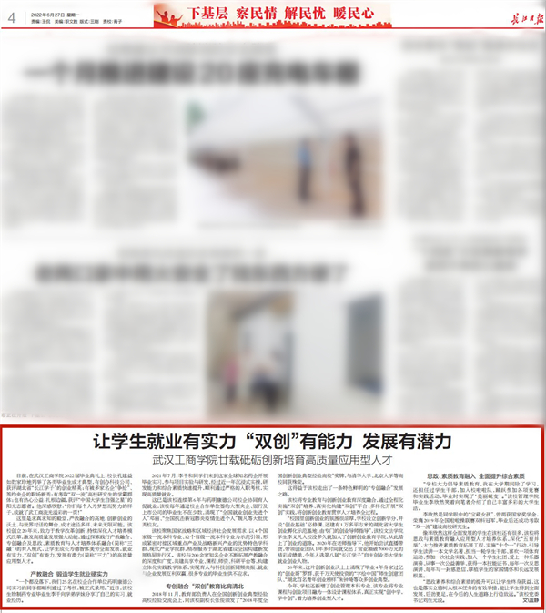 日前,在武汉工商学院2022届毕业典礼上,校长孔建益如数家珍地列举了各类毕业生成才典型,有创办科技公司、获评湖北省“长江学子”的创业精英;有被多家名企“争抢”、签约央企的职场新秀;有考取“双一流”高校研究生的学霸群体;也有热心公益、扎根边疆,获评“中国大学生自强之星”的阳光志愿者。他深感欣慰:“你们每个人为梦想而努力的样子,成就了武工商流光溢彩的一页!”