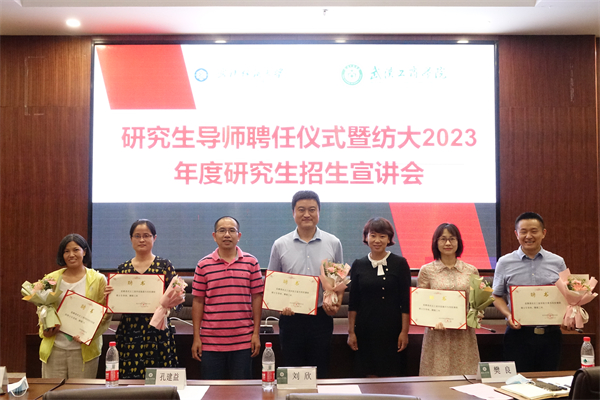 在聘任仪式上,武汉纺织大学研究生院常务副院长刘欣,管理学院院长吴金红为此次受聘的硕士研究生导师王勇、王猛、魏华、操露和朱荣艳颁发聘书。