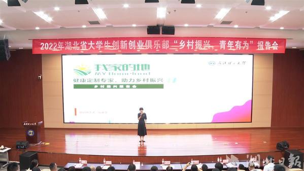 6月30日下午,2022年湖北省大学生创新创业俱乐部“乡村振兴,青年有为”主题报告会在武汉理工大学举行,5位投身乡村创业的优秀大学生代表分享了各自的故事,并向大学生们发出号召。