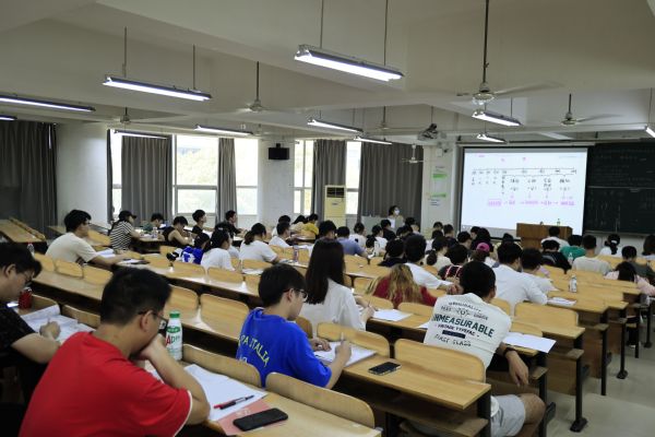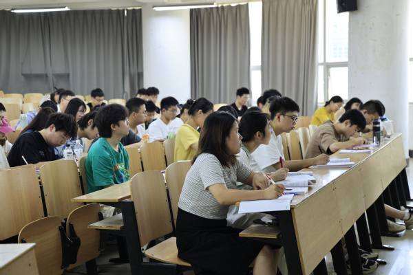 新闻中心讯(记者 万风 牟岩)7月13日早上9:00,学校生物制药专业2019级学生屠霜茹来到综合楼307教室,坐在第一排,和100多名同学们一起,开始听考研培训班的老师讲政治课。这个暑期考研培训班是学校为暑期留校复习备考研究生的学生免费开设的。