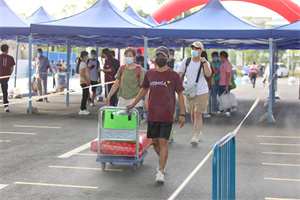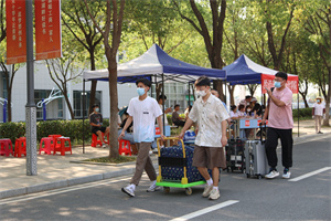 报到首日,恰逢中秋佳节,学校为新同学及师生志愿者都送上了月饼,还为等候的家长准备了盒饭、面包和矿泉水。“没想到开学第一天便收到了学校发放的月饼,真的太有爱了!这个中秋,虽然不能和父母在一起过节,但我们并不孤独!我待会还要拍一下照片发个朋友圈。” 2022级文法学院法学专业新生熊义康说道。