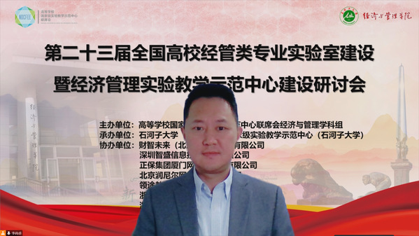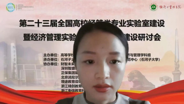 新闻中心讯(特约记者 刘佳欣 李萱)10月29-30日,由高等学校国家级实验教学示范中心经管学科组主办、石河子大学承办的 “第二十三届全国高校经管类专业实验室建设暨经济管理实验教学示范中心建设研讨会”以线上会议的形式召开。武汉工商学院实验教学中心主任李明教授,武汉工商学院经管实验教学示范中心主任、国家级实验教学示范中心联席会经管学科组顾问、虚拟仿真实验教学创新联盟专家毛志山教授,武汉工商学院物流学院副院长周小芬副教授出席会议。李明主任和周小芬副院长在会上分别作经验交流。