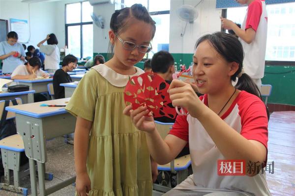 “晨曦之光”志愿者在教孩子们剪纸 (通讯员汪嘉怡摄)