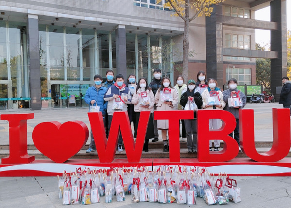 12月12日下午,在武汉工商学院图书馆前广场上,该校环境与生物工程学院的老师们为83名考研学生送上满载祝福的“考研加油福袋”,里面既有N95口罩、酒精等防疫物品,也有暖宝宝、奶茶、厚棉袜等贴心礼物,学生们收到后纷纷赞叹,学院的暖心举措让人振奋又温暖!
