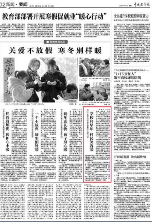 此外,学校还为村民送上了新年慰问金,帮助他们缓解疫情防控期间的资金压力。边缘易致贫户冯大娘一只手拿着“爱心健康包”,一只手拿着新年慰问金,脸上露出了久违的笑容:“年龄大了,身体也不怎么好,一直很担心没有退烧药,好在你们及时送来了!”