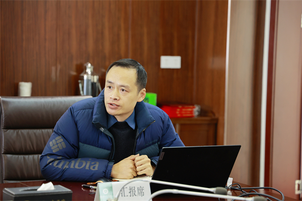 图为随州市科技局局长、市校合作办主任白玉涛做市校合作情况介绍  摄影:孙欢欢