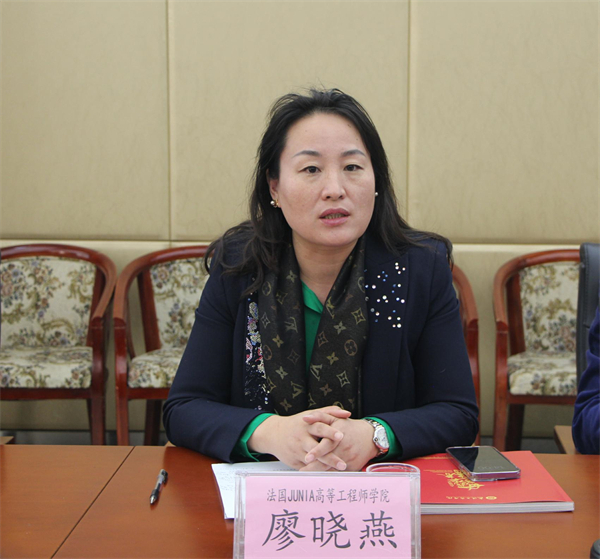 廖晓燕代表详细介绍了法国的精英工程师高等教育体系,分享了JUNIA高等工程师学院的基本情况以及与武汉工商学院开展合作的思路,并重点就工科领域硕士项目的合作交换了意见,达成了初步共识。