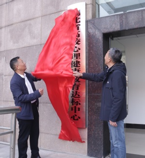 刘生元书记、桂裕清副校长共同为重建后的大学生心理健康教育中心揭牌。
