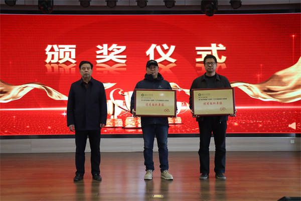 图为赵北平副校长为优秀组织奖获奖单位颁奖