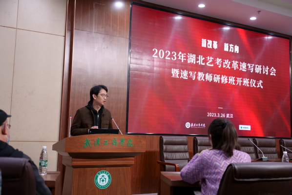 新闻中心讯(通讯员 袁慧 常杰 邹萍)3月26日9:30,由武汉工商学院艺术与设计学院与《湖北艺考指南》、马利画材联合举办的“新改革·新方向”2023年湖北艺考改革速写研讨会暨速写教师研修班在学校图书馆会议室开班。