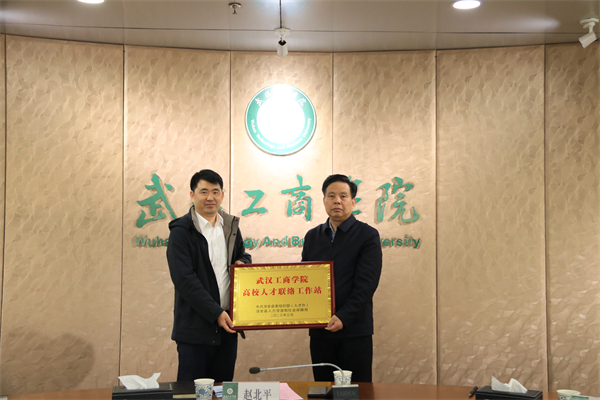 图为中共淳安县组织部向武汉工商学院授予“高校人才联络工作站”牌匾 摄影:郝芮