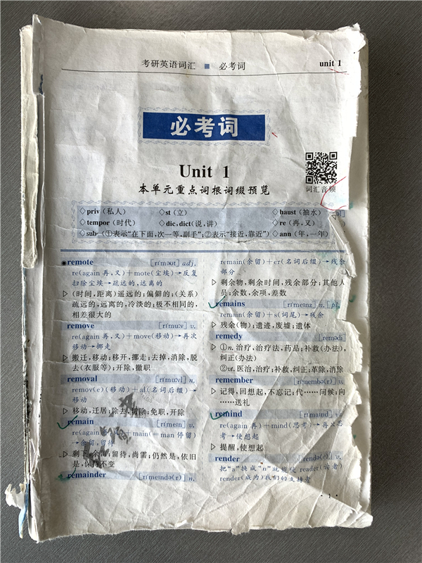 谈及自己的复习经验,游晨楠向学弟学妹们分享道:“建议大家在复习过程中常用‘框架式记忆法’,将书本上复杂难懂的重点内容根据自己的逻辑疏通脉络,构建一个长满知识点的框架,这样更方便背诵熟记。”同时,他认为最重要的就是制定好自己的考研规划,不要浪费时间做无用功;在复习政治、英语这类公共课时,不盲目听信网上的经验帖,对市面上卖得火热的考研课程和各类考研机构的宣传也要理性看待。“我复习的时候没有跟风去看一些网红老师的课,而是在网上看北大老师的课,自己做笔记”。直到考试结束,他的笔记有20余本,笔记本在知识点的不断增补中也早已翻烂。
