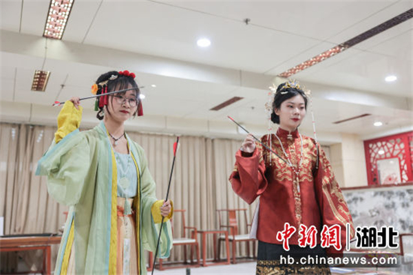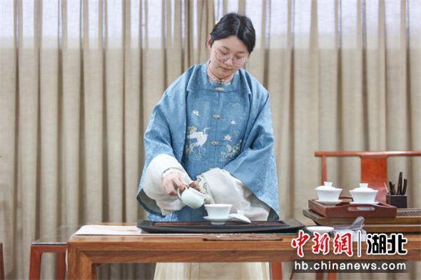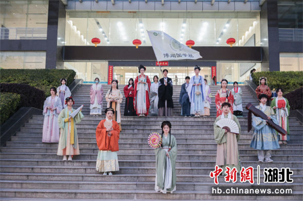 中新网湖北新闻3月31日电 (孙欢欢 余冰燕 张彦涵)越罗衫袂迎春风,玉刻麒麟腰带红。恰逢花朝节前夕,校园繁花盛开之际,3月30日,武汉工商学院二十余名青年学生身着汉服,巡游校园踏春赏花、共赴雅集品茗清谈,向师生们展示了汉服及中华优秀传统文化的魅力。