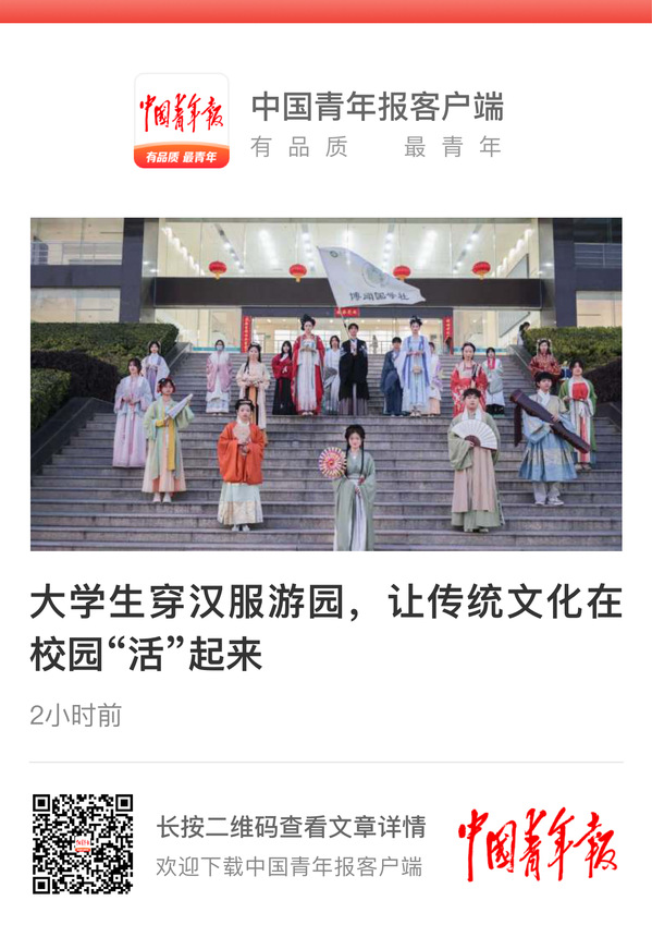 本次活动负责人、学校博闻国学社会长李雨萌同学介绍,活动旨在为学校汉服爱好者搭建一个展现自我、互动交流的平台,让传统文化可亲、可近、可感,同时吸引更多青年学生感受和认同汉服文化的魅力,共同传承和弘扬中华优秀传统文化。