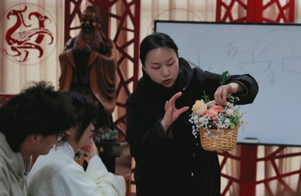 新闻中心讯(记者 周逸文)“插花是一种文化艺术,中式插花以借花抒情、托物言志为特色,更加崇尚自然美,追求意境和韵味……”4月4日12:00,武汉工商学院在国学馆举办了一场中国传统插花艺术主题活动——花朝雅集。本次活动由校团委组织、国学教育研究院刘俐君博士主讲,30余名学生参与,体验传统插花艺术的魅力。