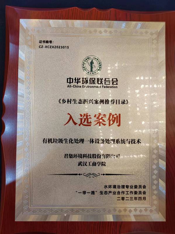 新闻中心讯(特约记者 芳草)4月10日,2023中国乡村振兴与环境发展论坛在江西省南昌市召开。论坛发布了乡村生态振兴典型案例,由武汉工商学院推荐的校企合作科研成果“有机垃圾生化处理一体设备处理系统与技术”入选中华环保联合会的《乡村生态振兴案例推荐目录》。武汉工商学院科技部常务副部长刘芳教授作为代表领取了入选证书。中华环保联合会是经国务院批准、民政部注册,接受生态环境部和民政部业务指导及监督管理的社团组织。