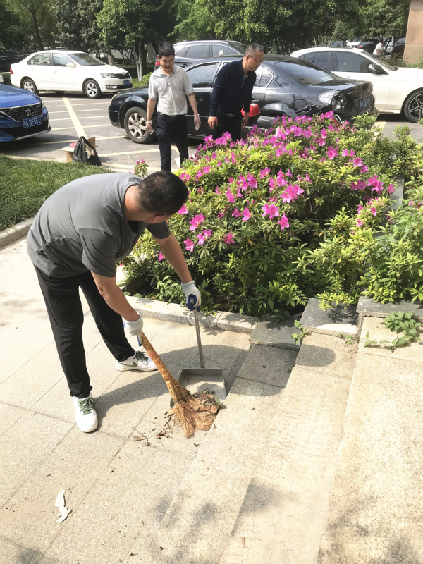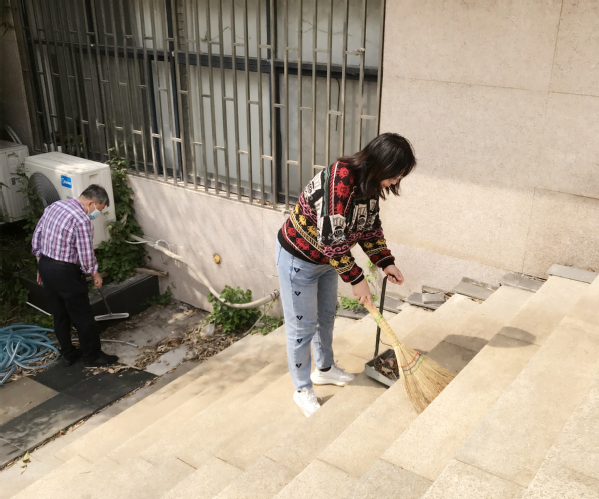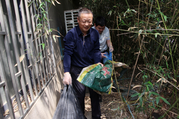 本次大扫除活动将全校共划分为16个卫生责任区。副校长桂裕清、左宗文带领各职能部门教职工代表来到责任区域,用扫帚、撮箕、铲子等劳动工具,对综合楼广场、周边绿化带等场所,进行了认真清理打扫。