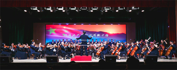 音乐会在大气磅礴的《黄河》钢琴协奏曲中拉开序幕,演奏者们通过钢琴协奏曲、管弦乐、小提琴协奏曲、混声合唱、舞蹈等多种艺术表现形式,倾情演绎了《没有共产党就没有新中国》等13首大众耳熟能详的红色经典曲目及民族乐曲。在气势恢弘的音乐和热血沸腾的歌声中,表演者们沉浸式演出,极富感染力和冲击力,彰显了音乐和舞蹈打动人心的独特力量,温暖人心,催人奋进。